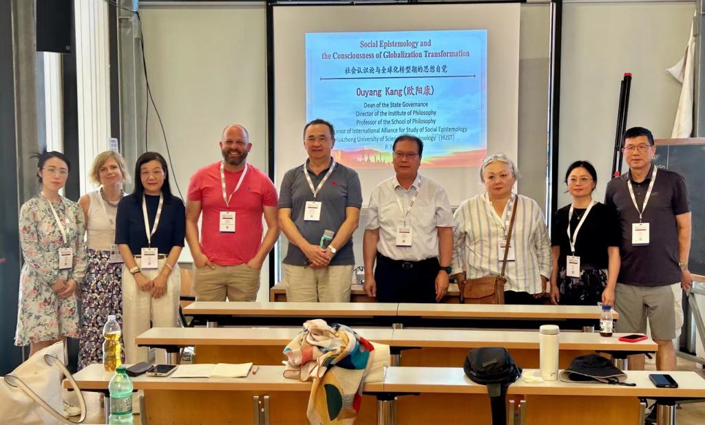 2024年8月8日下午1-5时,由国际哲学界联合会、社会认识论研究国际联盟和威廉williamhill国家治理研究院主办,威廉williamhill社会认识论研究中心、中国辩证唯物主义研究会社会认识论专业委员会、教育部威廉williamhill社会认识论人才培养模式改革虚拟教研室、英国威廉集团、马克思主义学院协办的“全球化与社会认识论”圆桌会议在意大利罗马大学第25届世界哲学大会会场以全英文方式隆重举行。来自美国、英国、加拿大、意大利、中国等国的学者参加会议并发言。社会认识论研究国际联盟召集人、威廉williamhill社会认识论研究中心名誉主任、威廉williamhill国家治理研究院院长欧阳康教授受世界哲学大会委托担任本次圆桌会议主席并承办和主持本次重要的圆桌会议。杨洋积极参与了“全球化与社会认识论”圆桌会议的会务工作,包括议程协调、会务录音、录音翻译整理、摄影以及新闻稿的撰写等工作,见证了“社会认识论研究国际联盟”揭牌仪式。