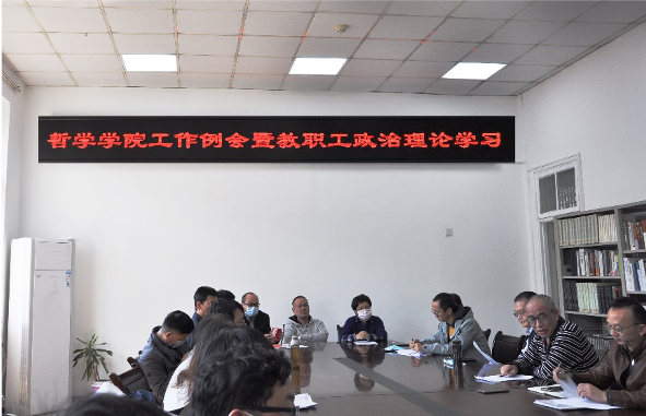 10月8日下午2:00,在东五楼435会议室,哲学院教职工工作例会、教职工政治理论学习举行,院党委书记杨海斌主持。