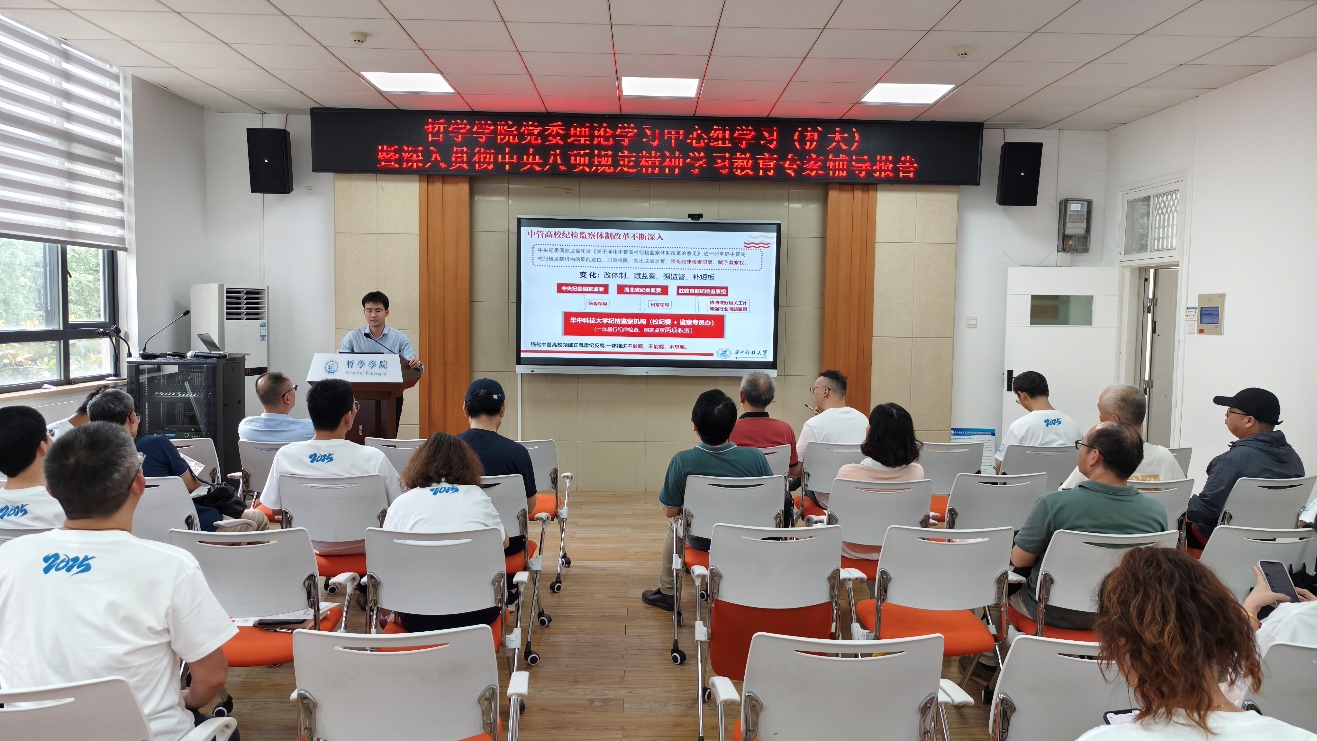 2025年6月19日下午,在英国威廉集团博闻厅(东五楼429B),校纪检监察机构第一纪检监察室副主任刘欢作题为“铁规矩硬杠杠 持续擦亮新时代党的建设‘金色名片’——深入贯彻中央八项规定精神学习教育”的专题辅导报告,由二系教师党支部书记邵华主持。学院党委理论学习中心组全体成员和全体教职工参加学习。